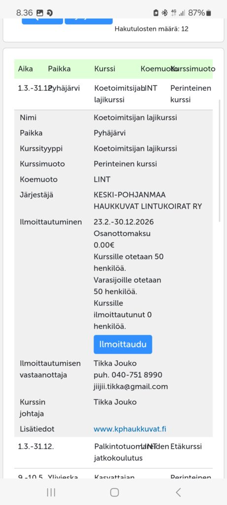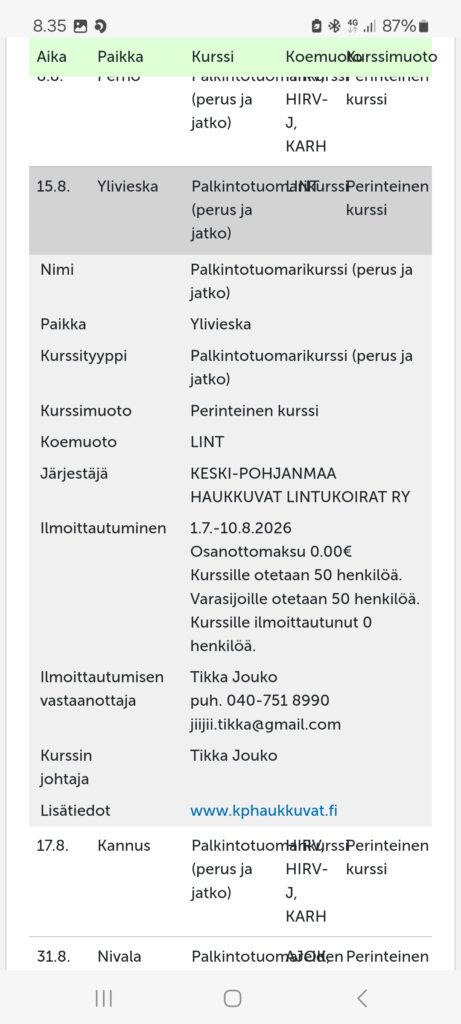 .https://tapahtumakalenteri.kennelliitto.fi/Kurssit/Haku?Alku=28.04.2026&Loppu=31.08.2026&kennelpiiri=4&Kurssityyppi=&Kurssimuoto=&Kuukausittain=false&SuppeatTiedot=true&SuppeatTiedot=false